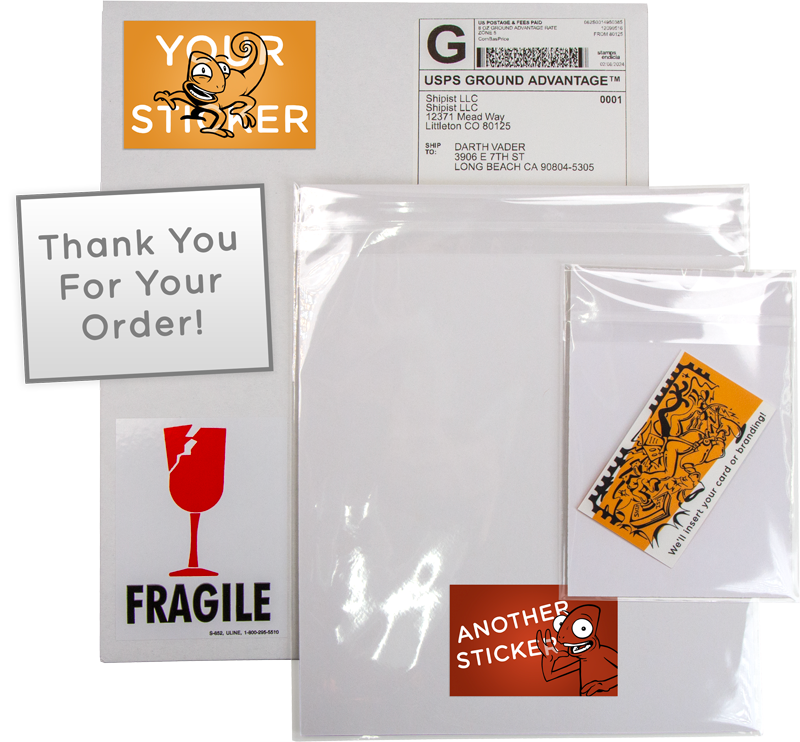 We can include one sticker on the top left of envelopes for prints larger than 5”x7” or at the top of tubes for rolled prints. Stickers must be on a roll, not individual.